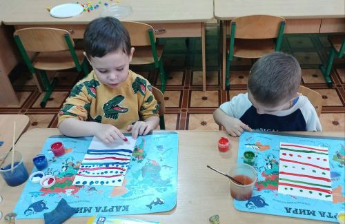 Во второй младшей группе "Звездочка" прошло занятие по рисованию, где дети учились рисовать красками коврик для Мишутки